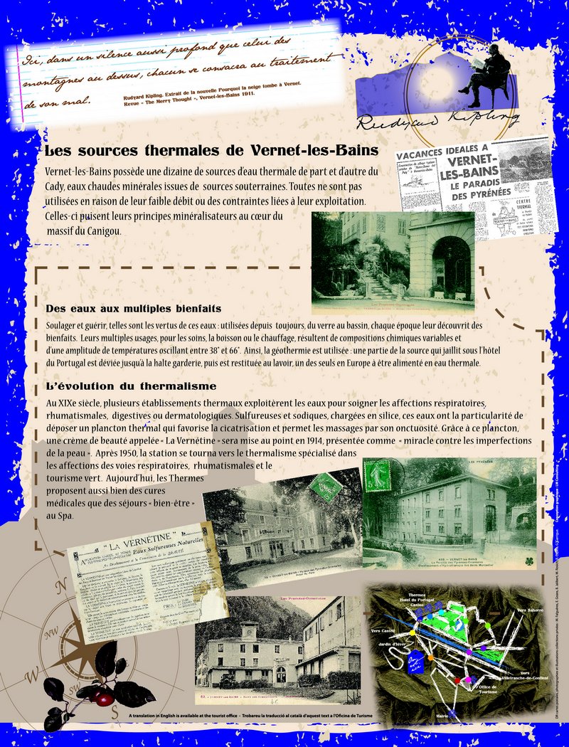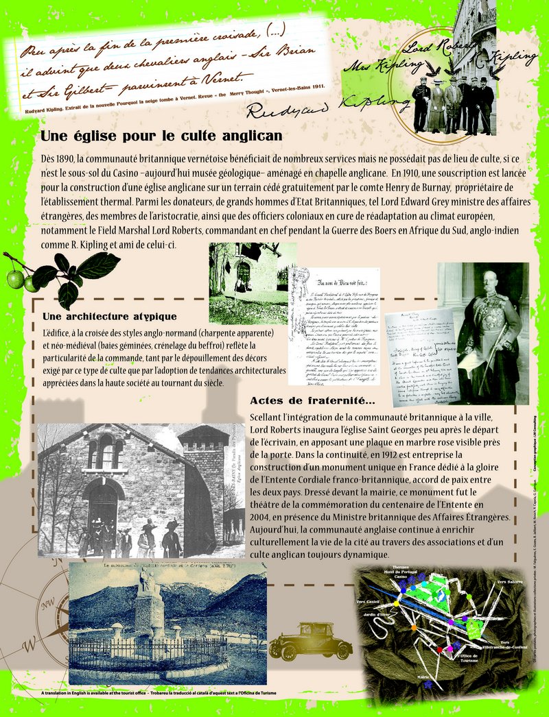 Panneau sur l'église anglicane Voir Wikipédia pour des informations sur l'ancienne activité minière de Vernet-les-Bains.